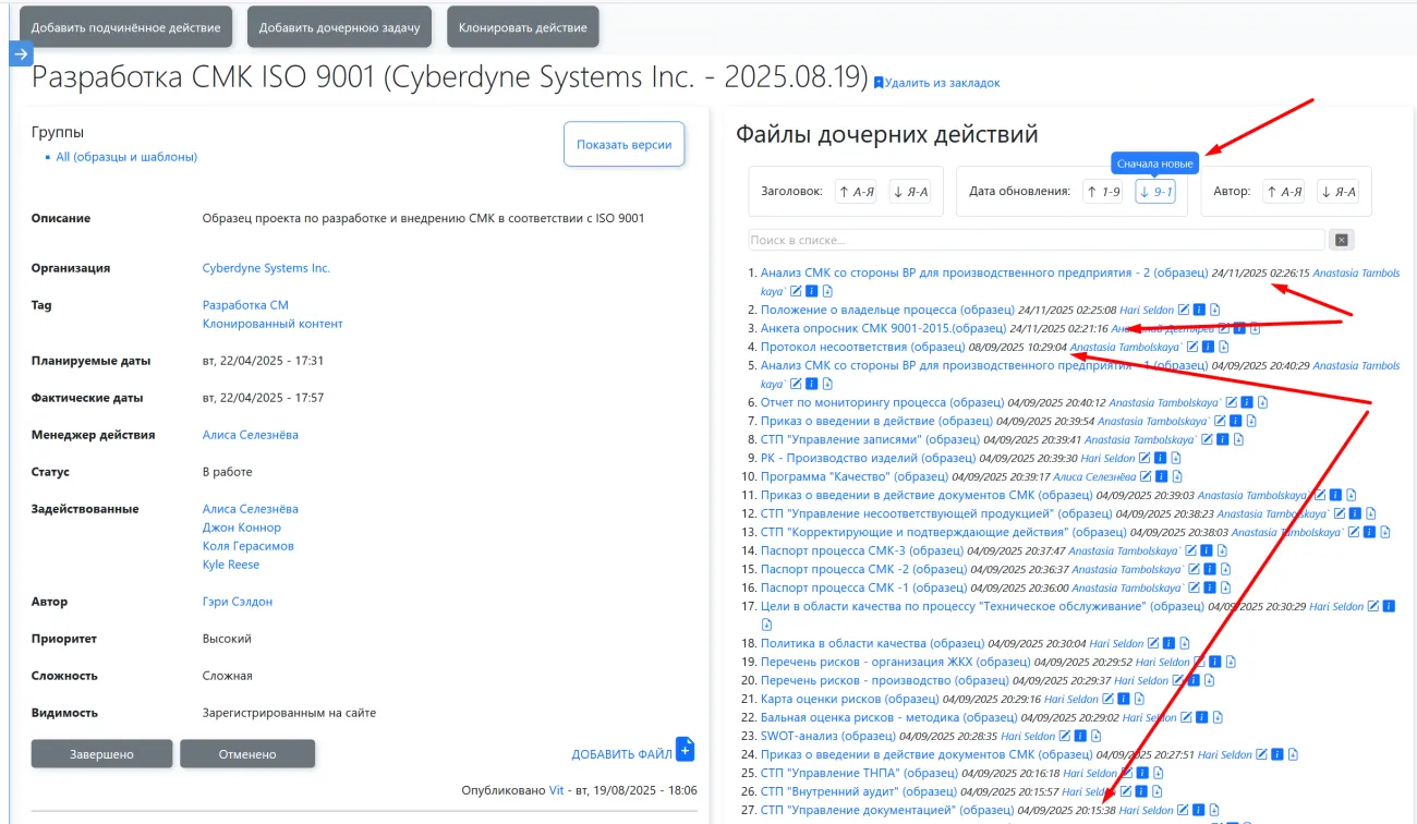 - Файлы теперь можно сортировать по заголовку файла (алфавитный порядок), дате обновления (порядок датирования) и по автору (алфавитный порядок). Кроме того теперь работает поиск по заголовку файла с автоматической обработкой запроса - в блоке отображения файлов остаются только те файлы, в заголовках которых содержится сочетание символов , введенных в строке поиска.