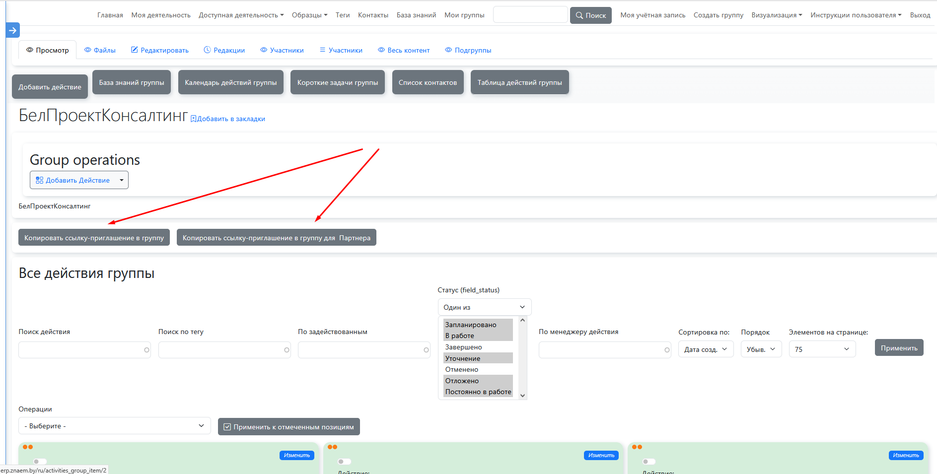 Пригласительная ссылка для партнеров группы (пользователи, которым доступен только тот контент, где они задействованы и предоставлено функция на создание собственного контента).